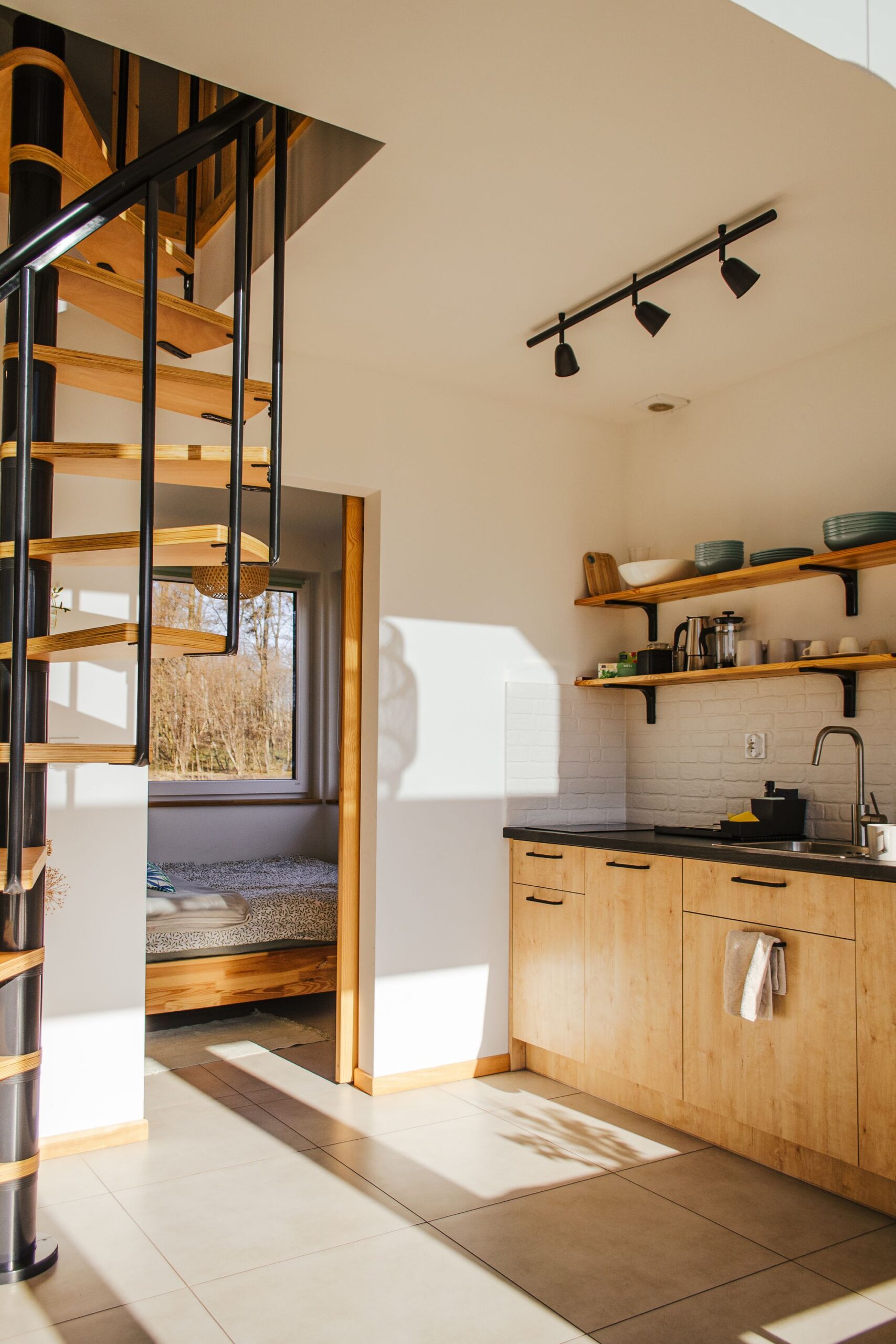 Antresola na górze – 2 łóżka jednoosobowe, na dole osobny pokój z łóżkiem dwuosobowym,