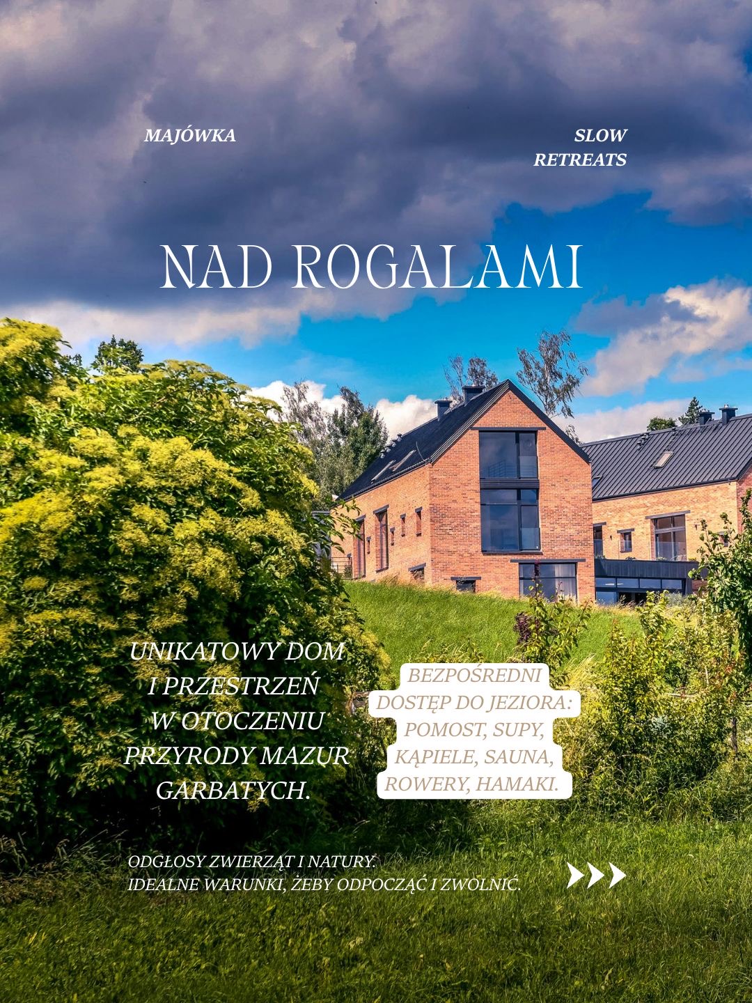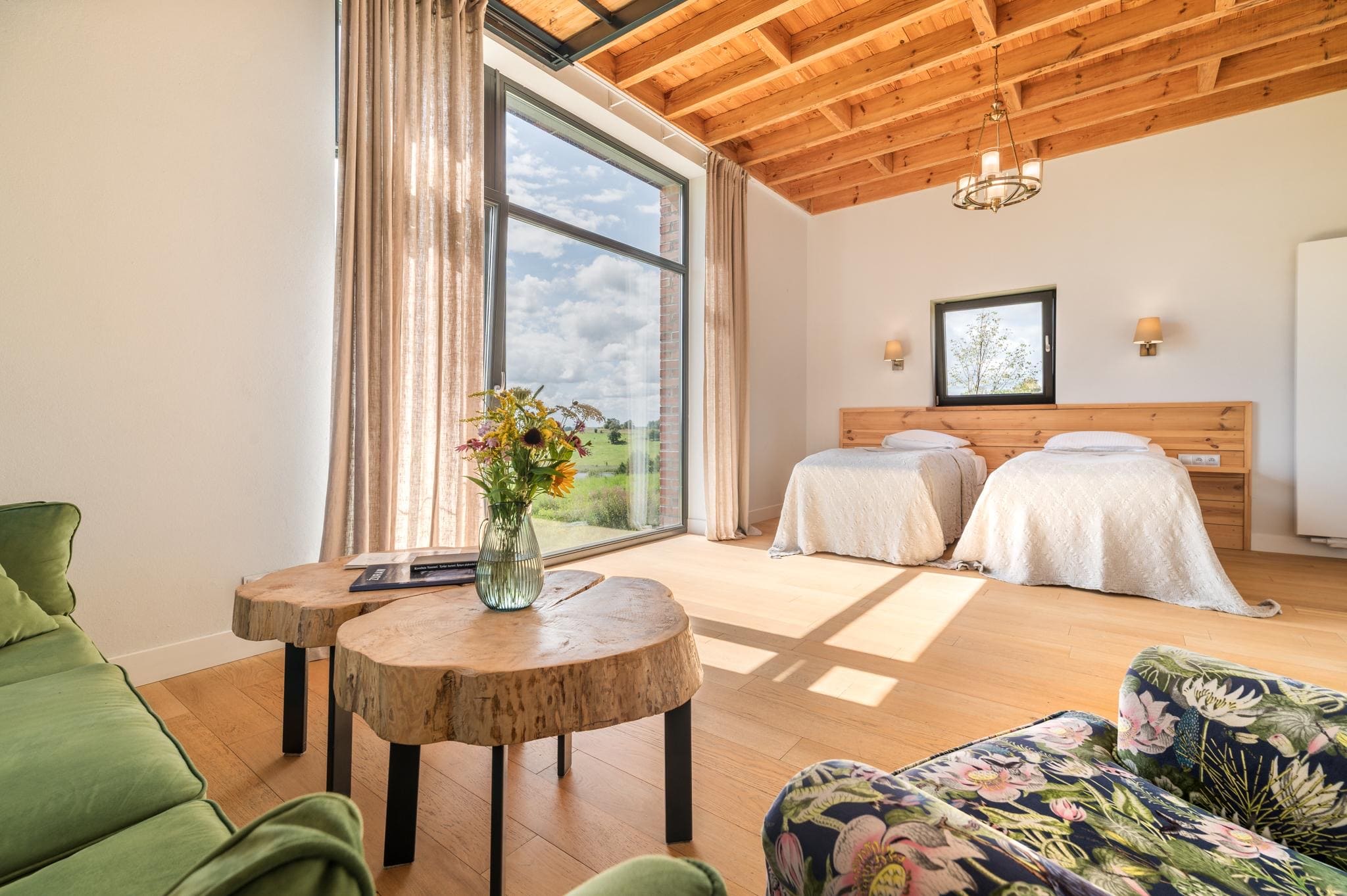 • Piękna architektura, jasne i przytulne wnętrza oraz panoramiczne okna z widokiem na łąki.