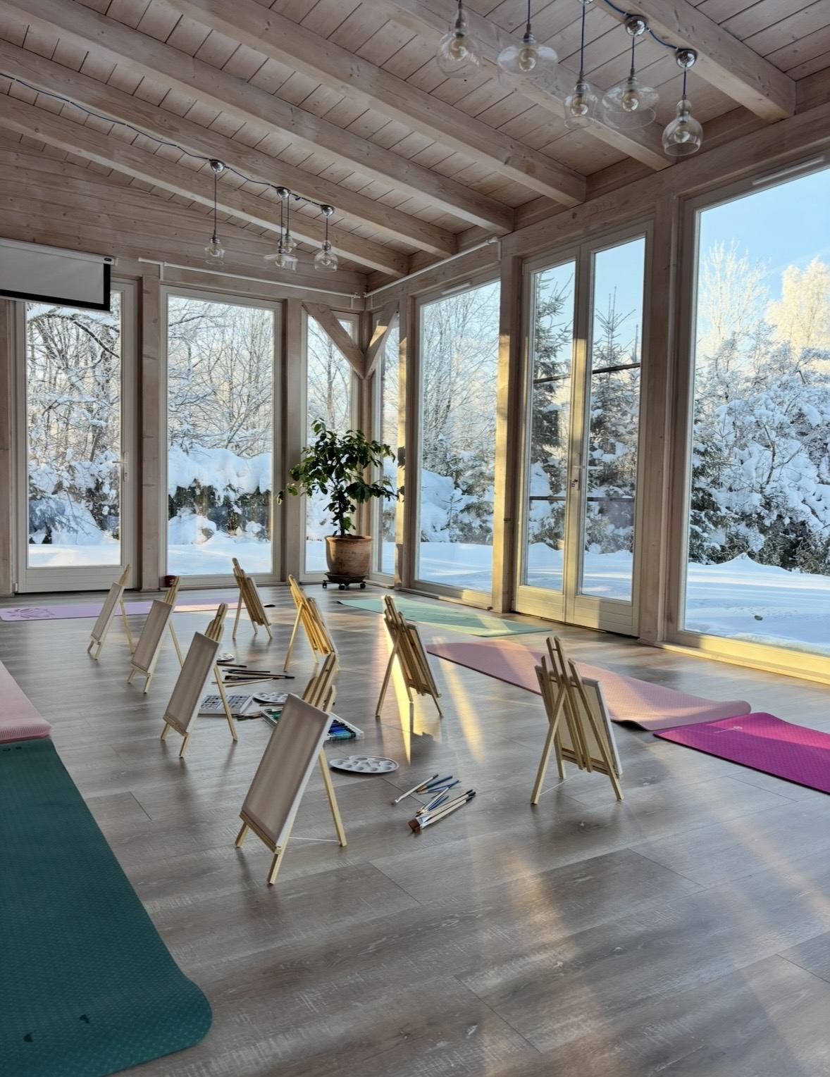 Sesje pilates, Poranne mobility, sesje relaksacyjne, techniki oddechowe. Artterapia, kąpiele leśne, spacery, kobieca atmosfera, lokalne sezonowe jedzenie,