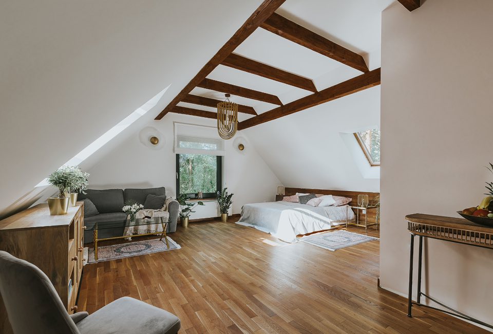 Komfort i Intymność: Pokoje i apartamenty są urządzone nowocześnie i klimatycznie (np. z kominkiem, pokojem kąpielowym, lub wyjściem na taras). Całe wnętrza mają za zadanie otulać i wyciszać, dając poczucie oderwania od codziennego zgiełku.