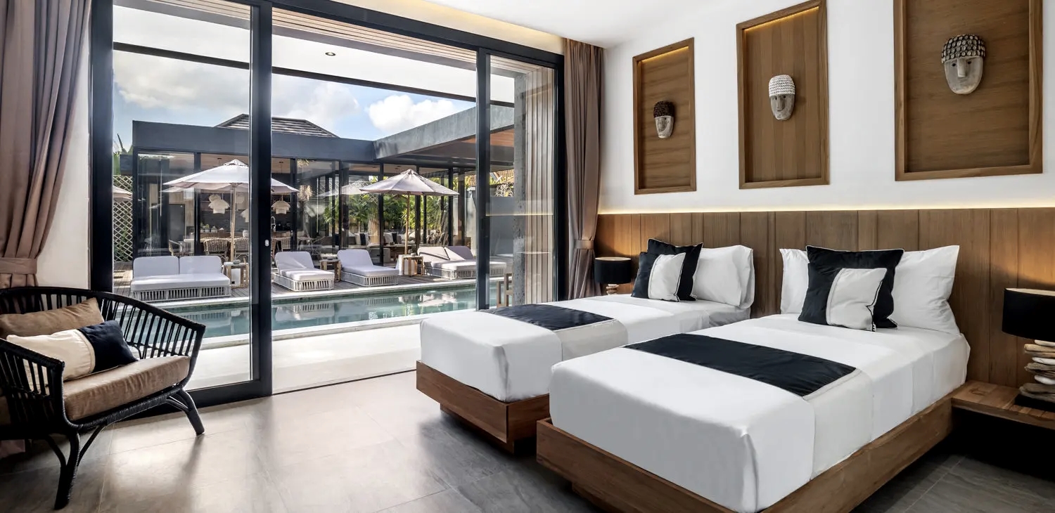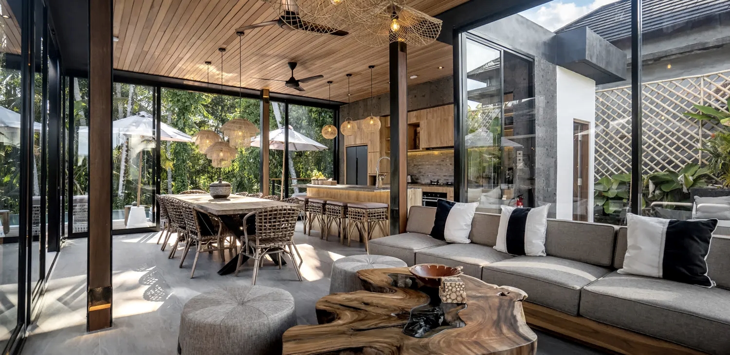 • Piękna willa niedaleko Ubud, idealnie położona - blisko atrakcji, a jednocześnie w otoczeniu spokojnej natury. Do  dyspozycji5 komfortowych sypialni (w każdej 2 pojedyńcze  łózka) z prywatnymi łazienkami, w pełni wyposażoną kuchnią, przestronne strefy wypoczynkowe, spektakularny basen infinity oraz prywatna sala do jogi. Przestronny salon z widokiem na basen i dżunglę  Basen zapewnia piękne widoki i leżaki do relaksu, a otoczona naturą drewniana sala sprzyja praktyce jogi.
