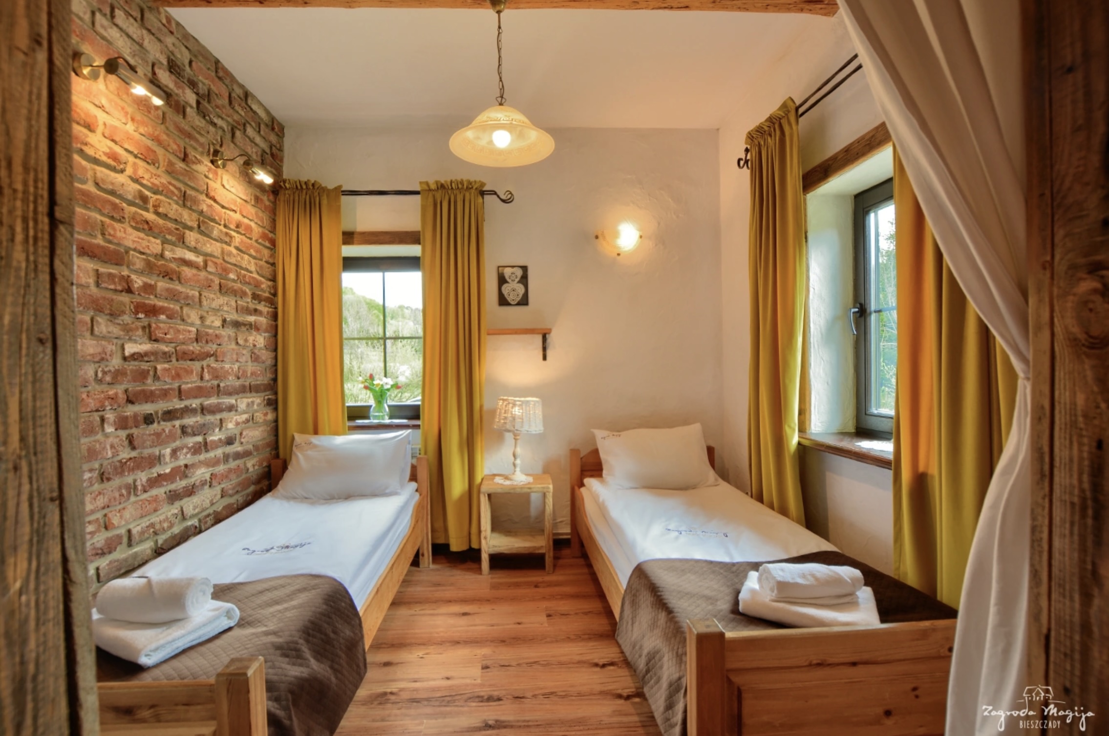 Magiczny Klimat: Poczujesz tu klimat wielokulturowych Bieszczadów. Drewniane chaty z kominkami (Modrzewiowa, Jodłowa) tworzą wyjątkową, intymną atmosferę, sprzyjającą integracji kobiecych kręgów i wyciszeniu.