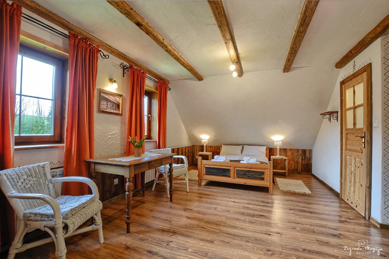 Bieszczadzki Stół: Kuchnia to celebracja lokalnych smaków. Śniadania i obiadokolacje są obfite i pełne regionalnych przysmaków (swojskie sery, przetwory, jaja prosto z kurnika). To jedzenie, które karmi siłą i tradycją.